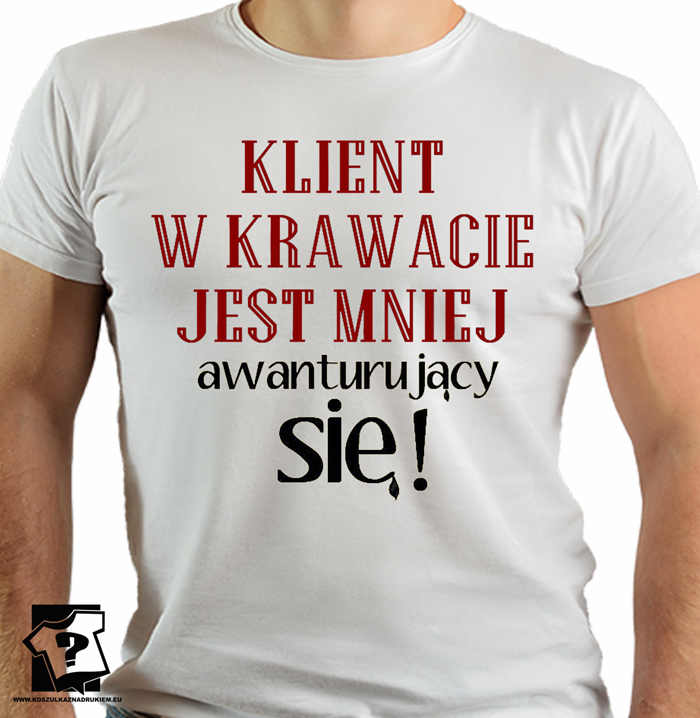 Klient w krawacie jest mniej awanturujący się – koszulka z nadrukiem